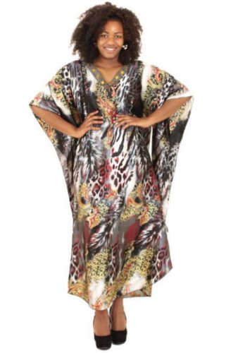 Shimmering Exotic Silver Safari V-neck Polyester Caftan KaftanExpress your exotic inner self with the lush colors and patterns of this African safari life kaftan. It's made of 100% polyester. Hand wash for best results. It fits up to a 50 inch bust, and is 50 inches in length. Made in China..../ Shimmering Exotic Silver Safari V-neck Polyester Caftan Kaftan / Size Evening Dresses